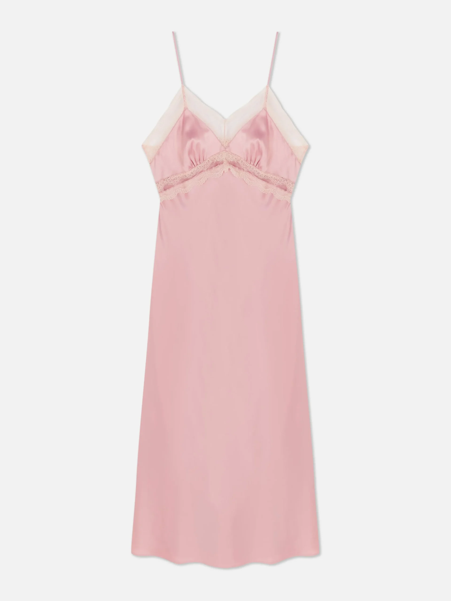 Nuisette Mi-longue En Satin à Finitions En Dentelle
